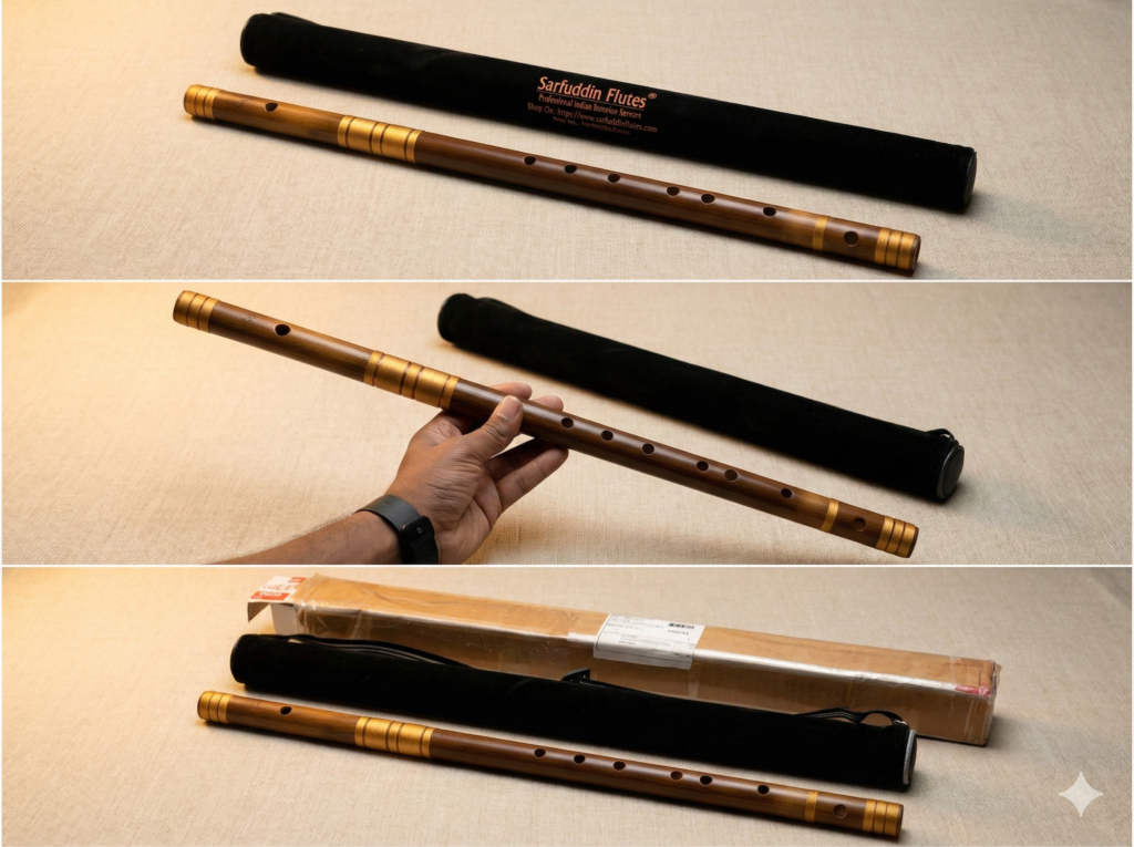 I ordered the G Natural Base from Sarfuddin Flutes, and as a beginner, I am very impressed. The packaging was excellent—it arrived safely in a sturdy case, which was a big relief. The bamboo feels well-seasoned and is perfectly straight. The photos don’t do it justice; the finish is very professional in real life, and the threading is neat and appealing.
